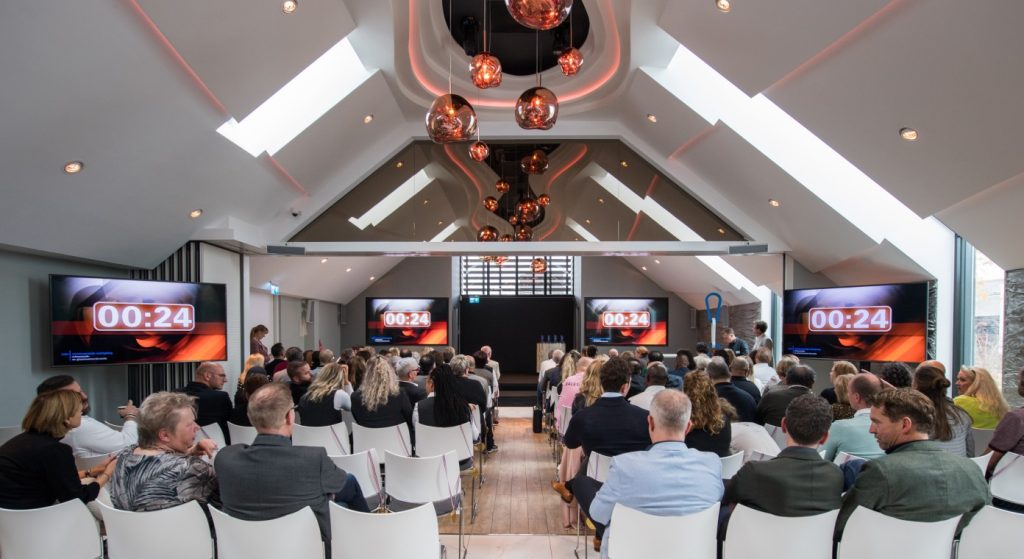Moderne kick-offs zijn energiek, gevarieerd en fun. Vergeet statische presentaties. Richt verschillende zones in: een strategy summit voor brainstormen, een training ground voor workshops, en een campfire circle voor storytelling. Verrijdbare tafels, whiteboards overal beschikbaar, en flexibiliteit om binnen tien minuten de opstelling aan te passen. Die flexibele en informele opstelling leidt tot mooie momenten van inspiratie en contact.